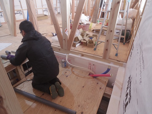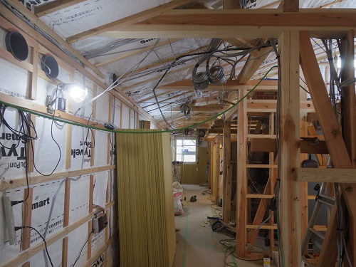 器具付けも始まり大工工事もまだ完了していないので、内装工事も含めて雑然としていますが、着実に完成に向かっています。