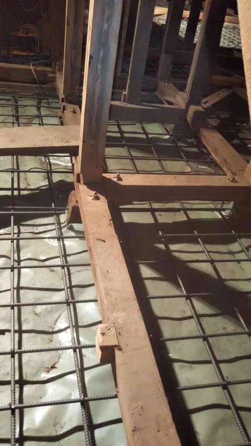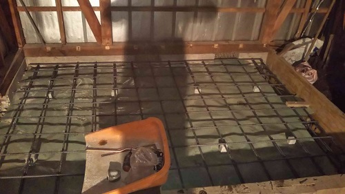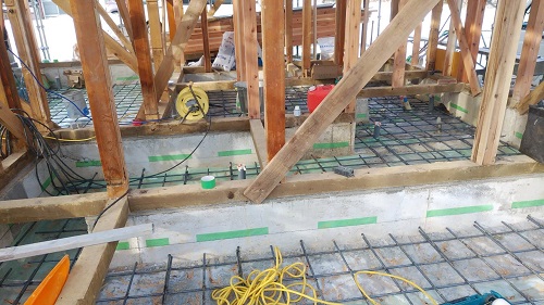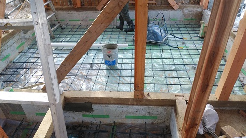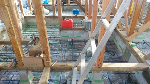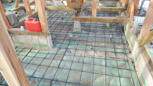 布基礎の不足部の基礎配筋と枠の取付が進みました。