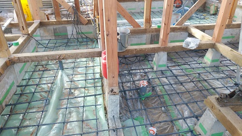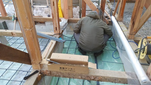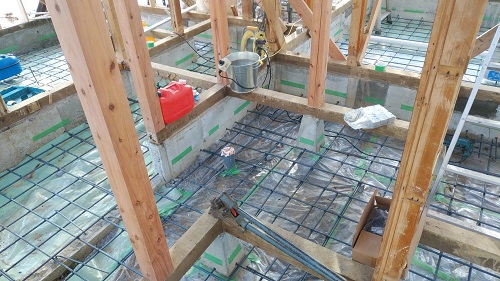 土間基礎は防湿シートの敷き込みと差し筋アンカー取り付けが進みました。