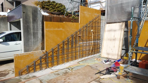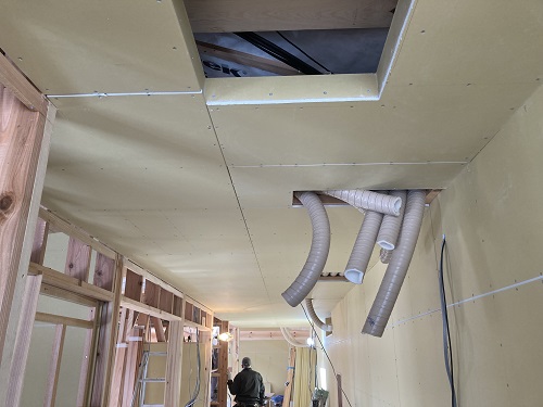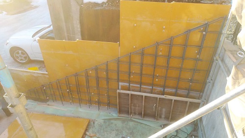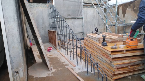 ボード張り天井板張込み共に進み、外階段工事も始まりました。