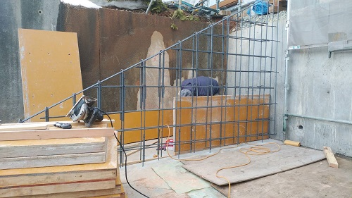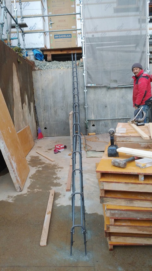 昨日コンクリート打設をしました。建物をガッチリと囲い込んで夜通し暖房を焚いて温めていました。