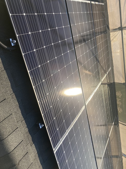 外部は外階段配筋と太陽光発電パネルの設置が進み、内部は間仕切り壁の工事が進んでいます。