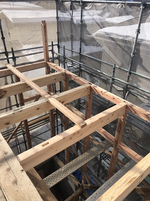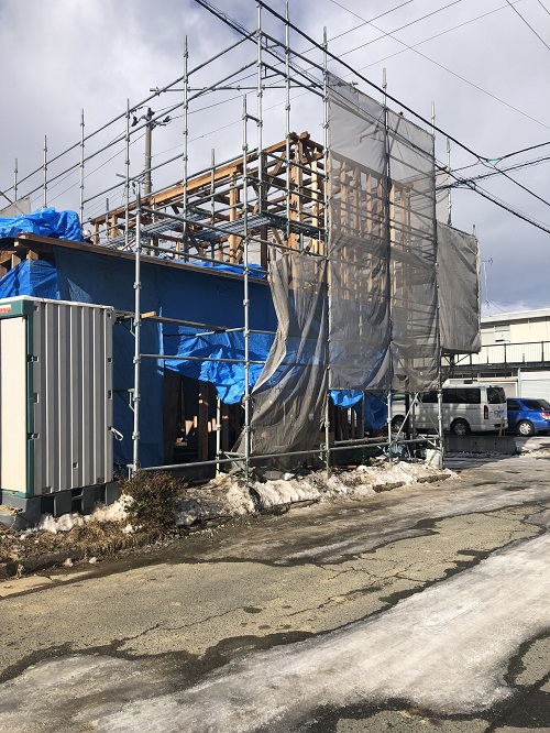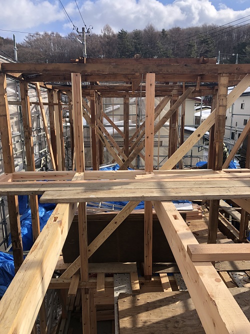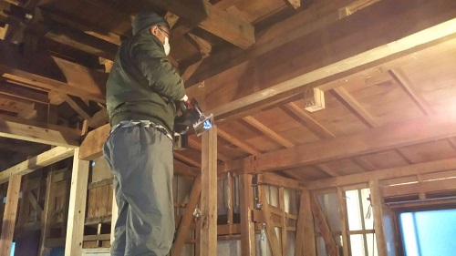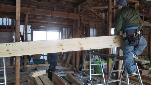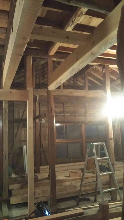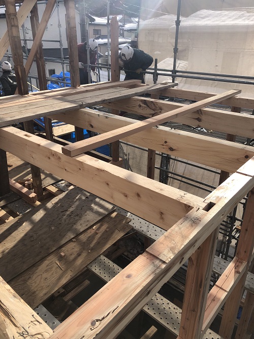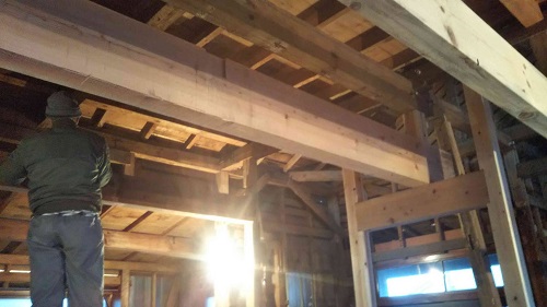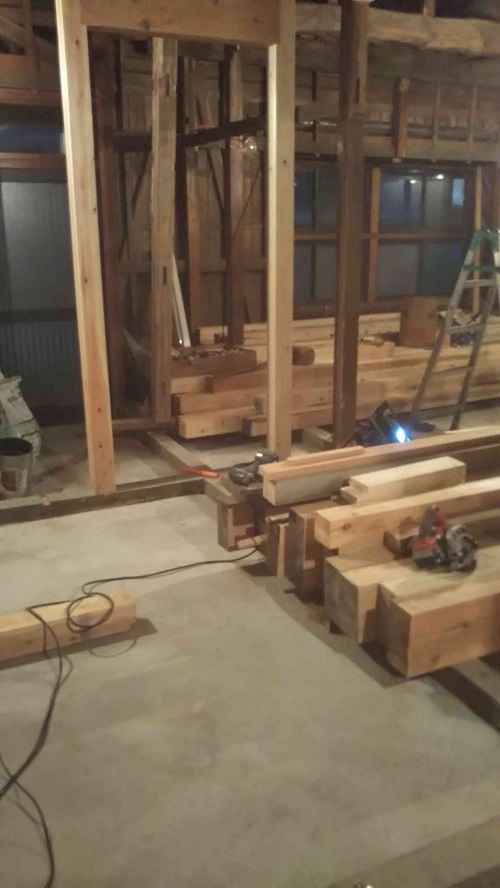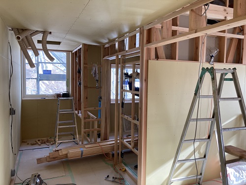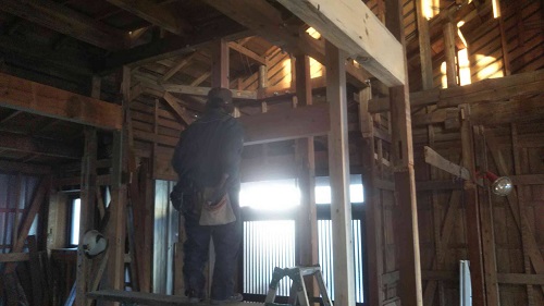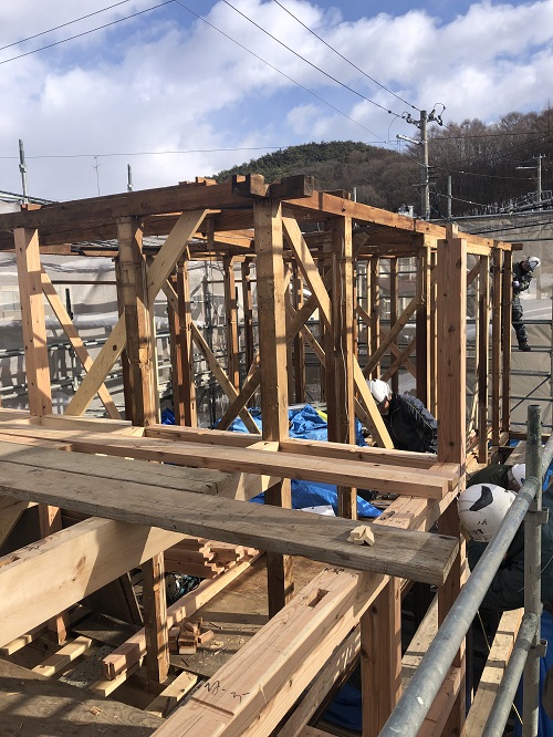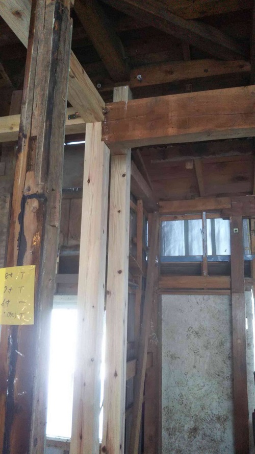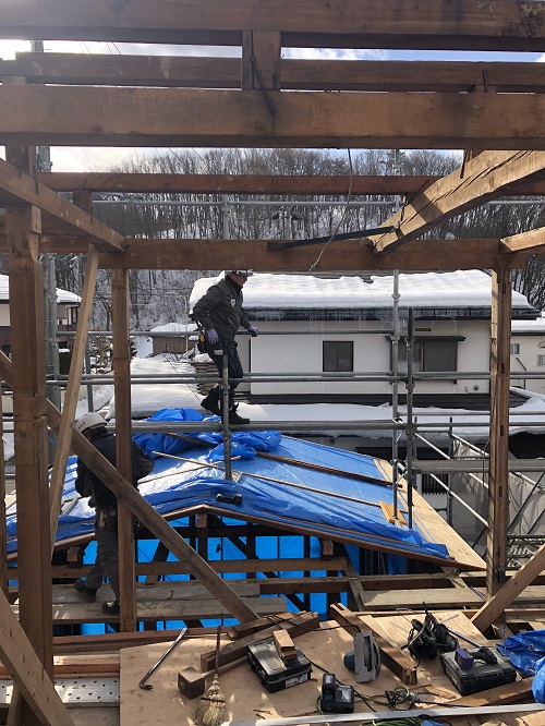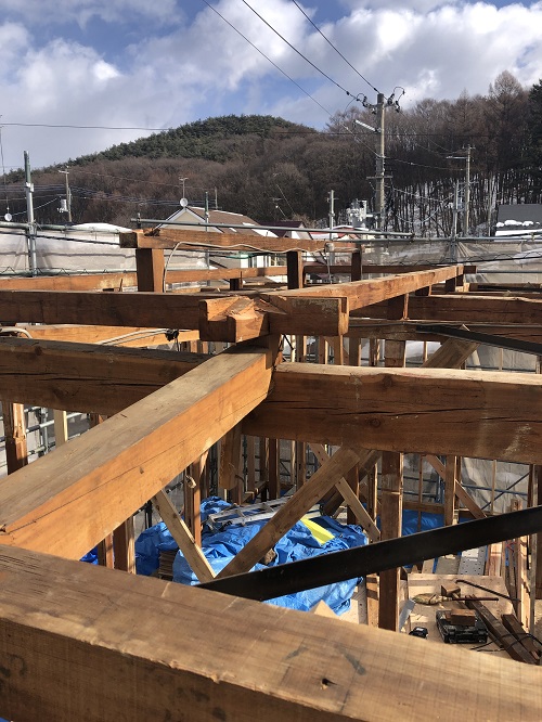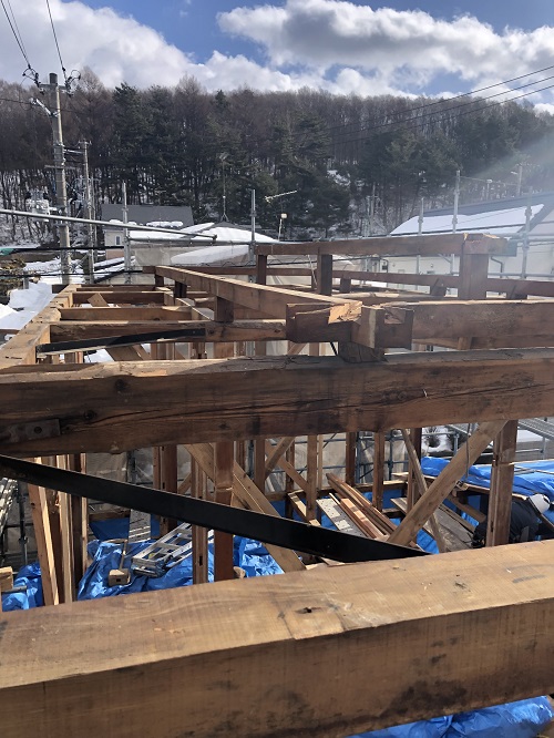 引き続き木部の梁入れ替えなど構造補強が進みました。ご近所を含めて除雪作業もさせて頂いたので、ほど良い道路状況です。