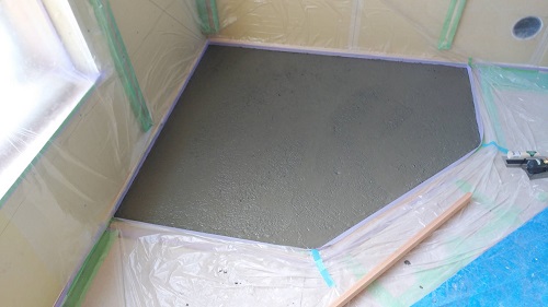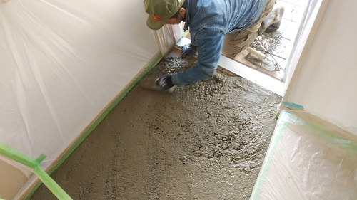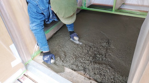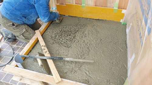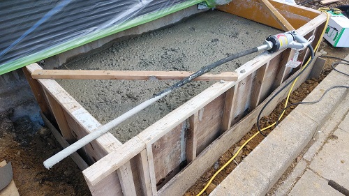 水道工事配管の影響で遅れた土間コンクリートの打設が進みました。