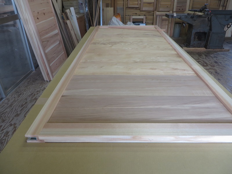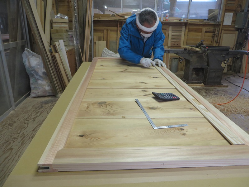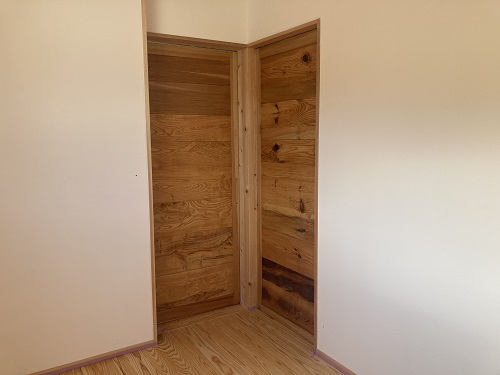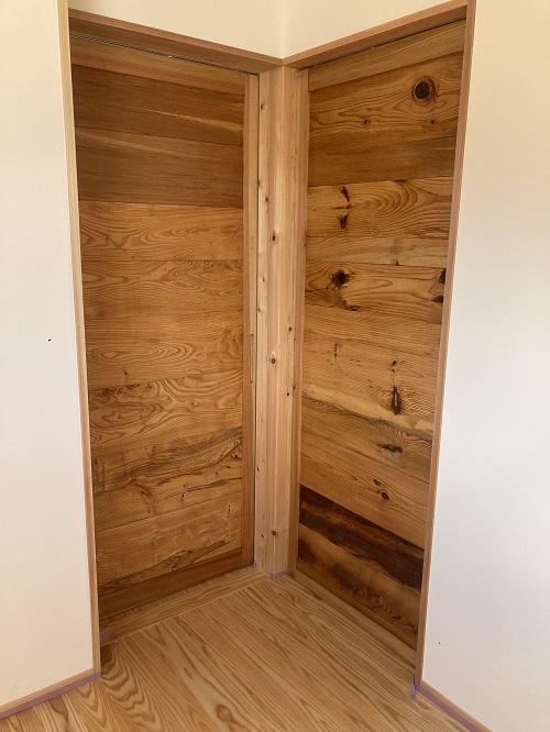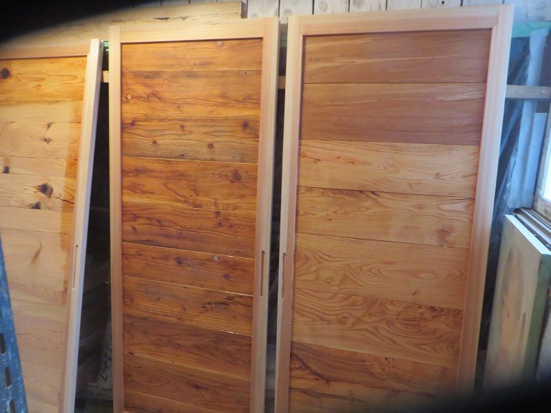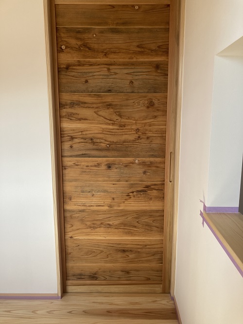 味のある古い板を張った建具を製作して、現場に取り付けられました。