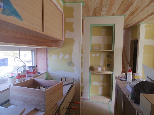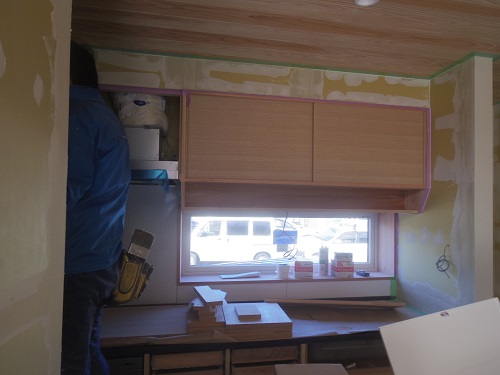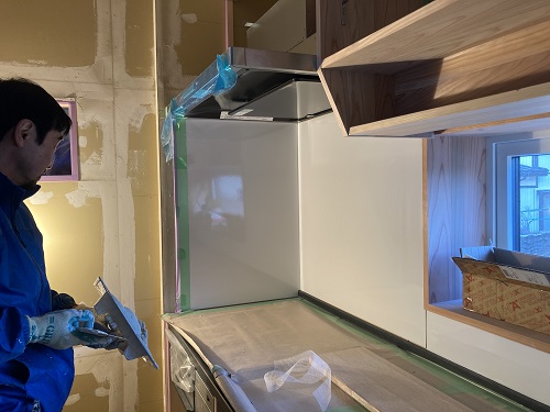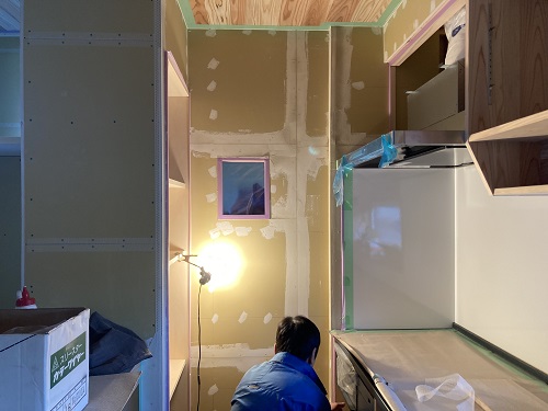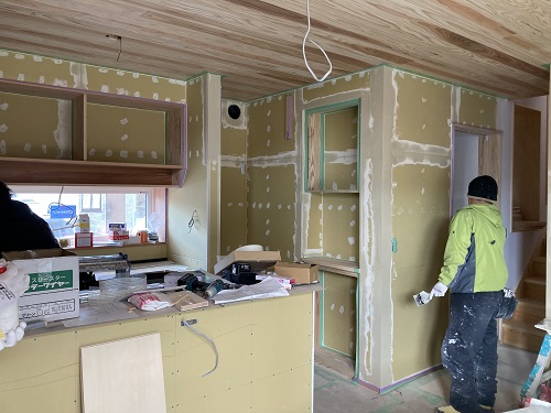 台所廻りの造作と内装パテ打ちが進んでいます。