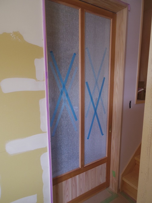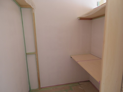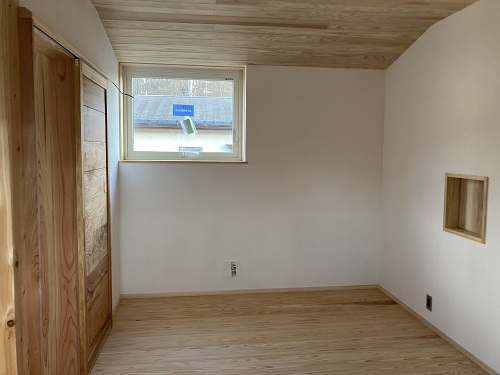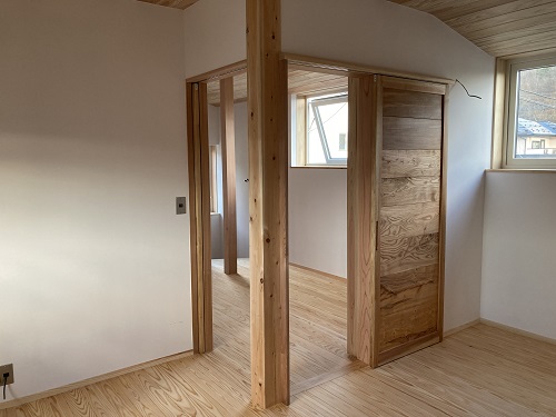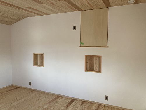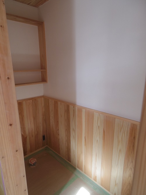 大工造作真っ最中ですが、大工と絡まない2階の方は内装が仕上がり始めています。