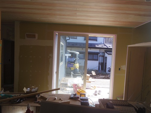 雪が降った後の昨日の午後の進捗です。目標の床は張り終えました。引き続き間仕切り壁と造作工事が進みます。