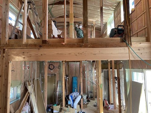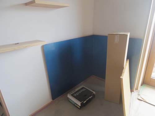 今日も午前中から外壁工事頑張って張り込んだとの事です。内部もボードの張込み進みました。