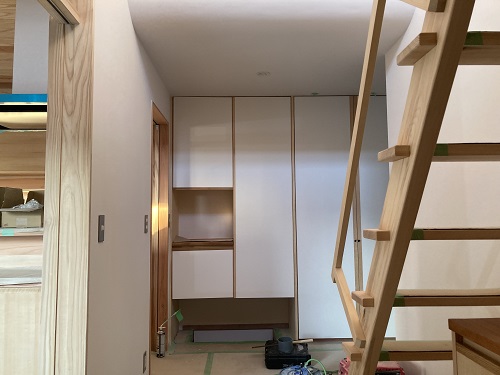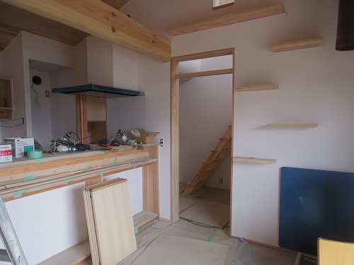 外部は卯T度デッキ工事が進んでいます。内部は仕上がりの雰囲気が見えて来ました。今月末までには竣工予定です。