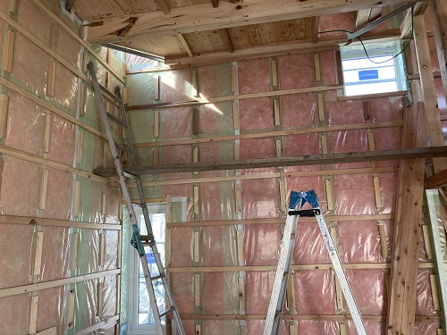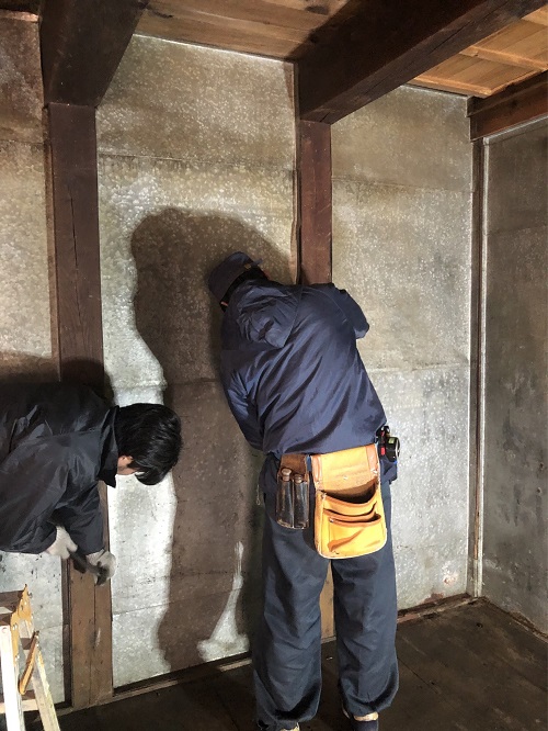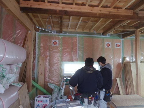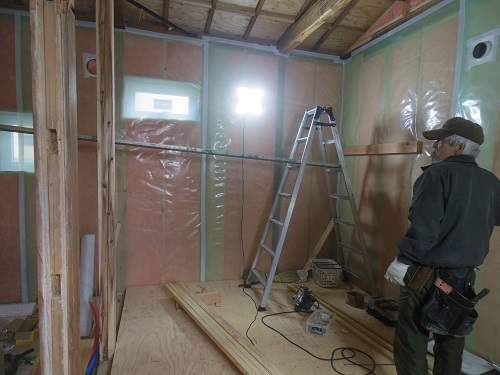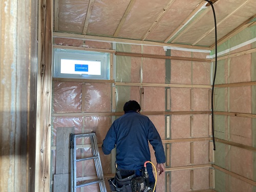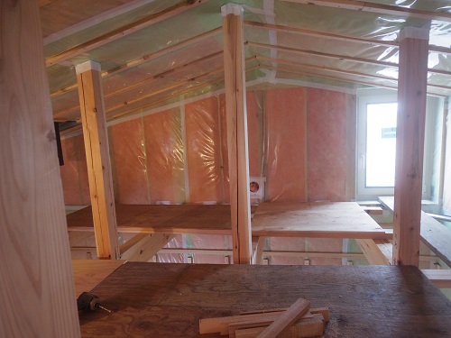 防湿工事が進み、天井断熱工事や床下断熱も進んでいます。