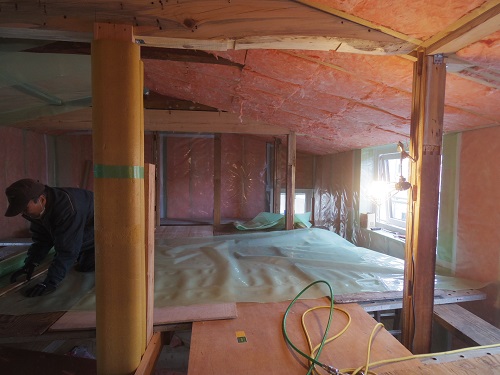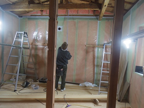 引き続きの屋根断熱及び防湿工事が進んでいます。