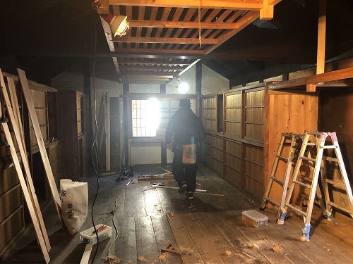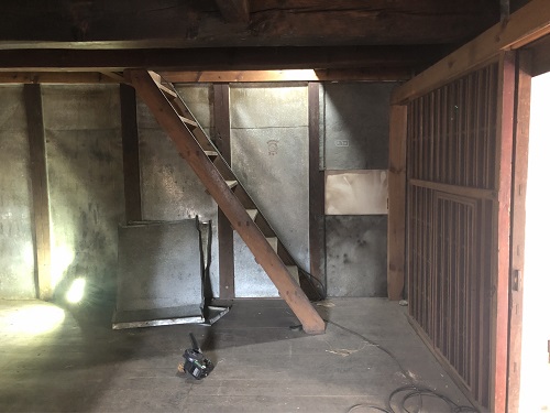 蔵を書庫への改装工事は各部の取り外しが進んでいます。