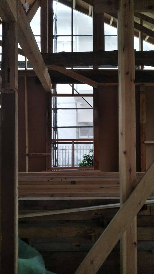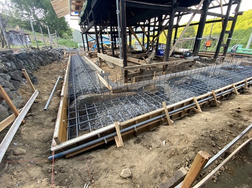 基礎砕石地業が進んで十分に転圧地盤固めしています。改修工事でもこれが出来るところが古民家の良さですね。