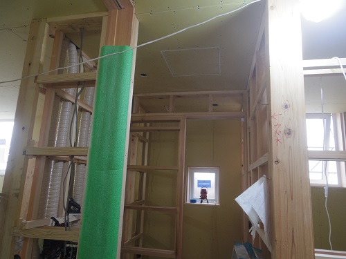 換気配管が進み床の下地合板の敷き込みが進みました。