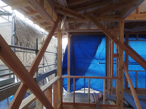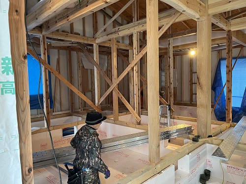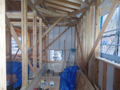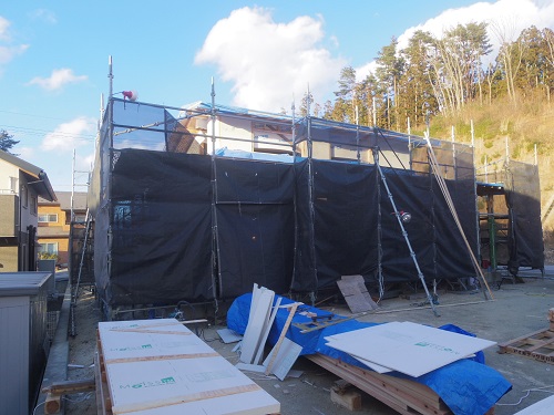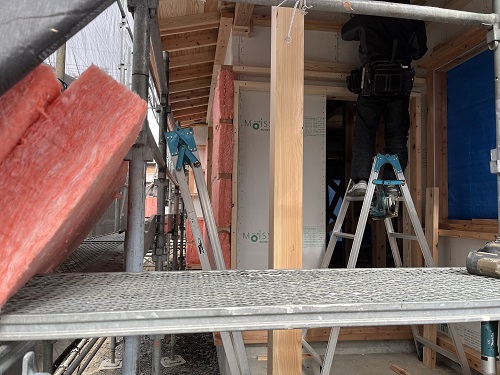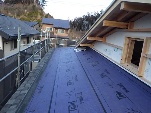 屋根工事が進み、付加断熱工事も始まりました。