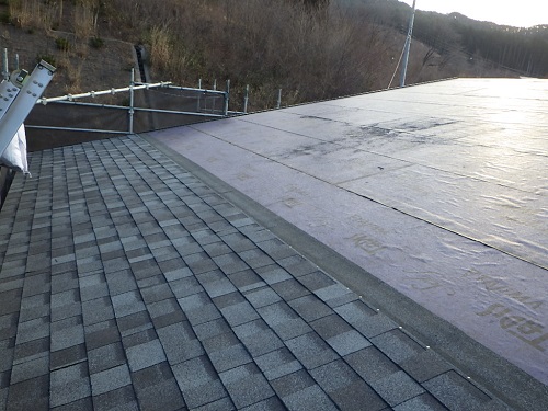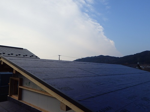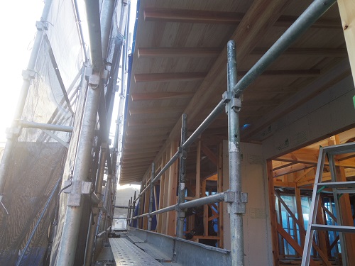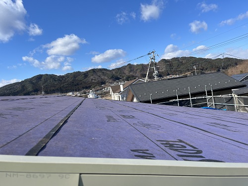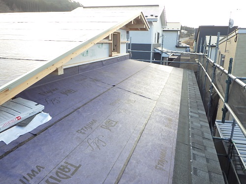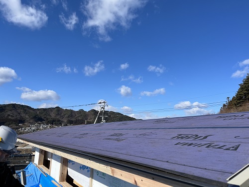 外断熱やゆかし断熱工事が進む中屋根工事も同時進行しています。