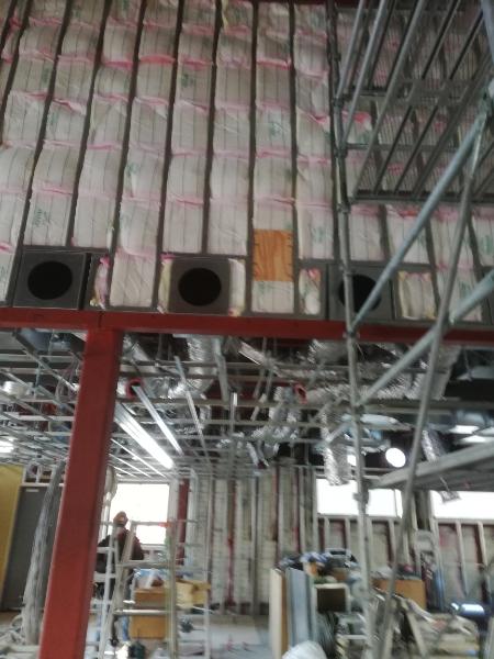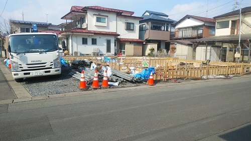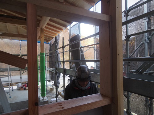 換気ダクト工事が苦戦しているとの事で、日曜日も作業が続けられたとの事です。外部の造成工事が行われているので、たとえ換気の穴明け工事と云えども外部工事は自由勝手に出来ない全体工事工程に合わせなければならない厳しさがあります。
