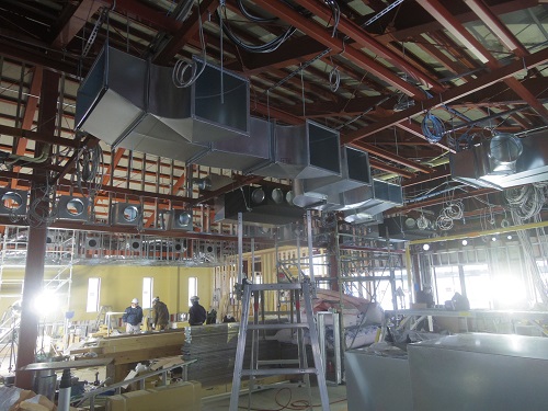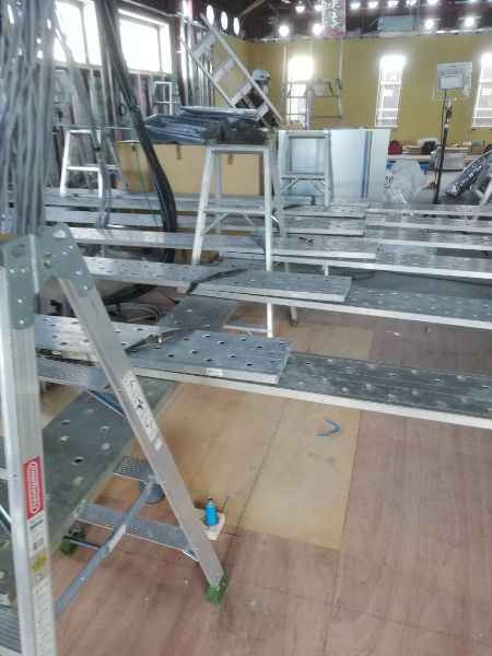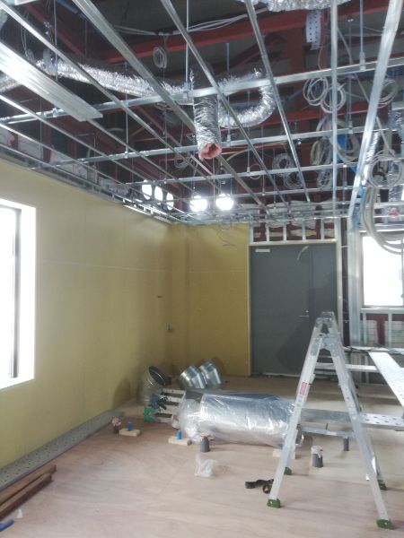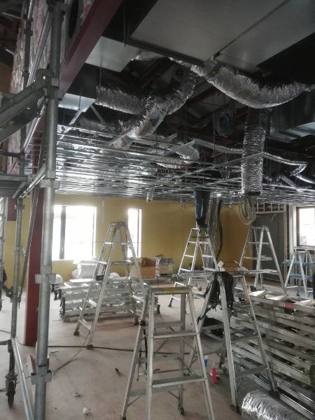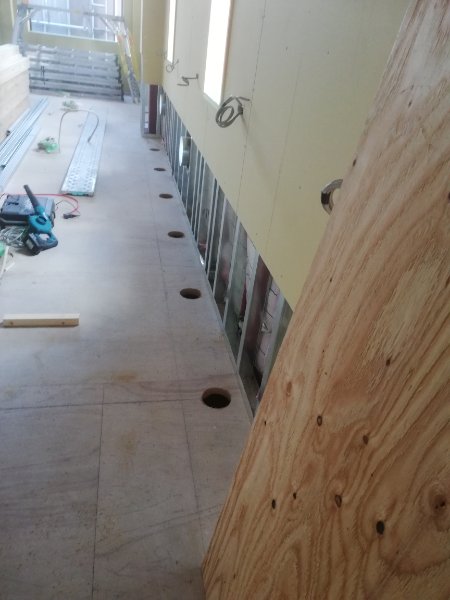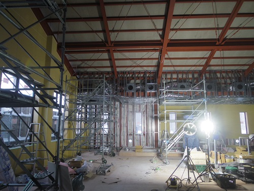 各部の軽天下地が進んできました。廃線も電気に限らず各種接続ケーブル類が配線されてきました。