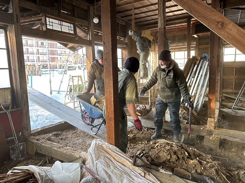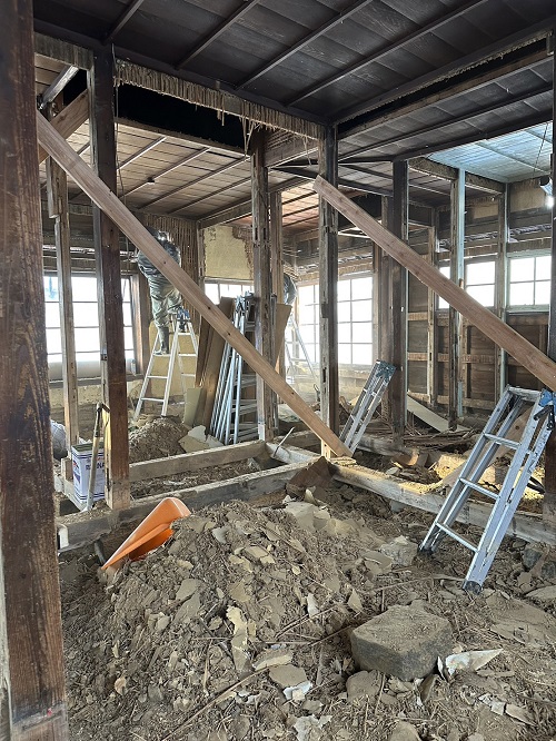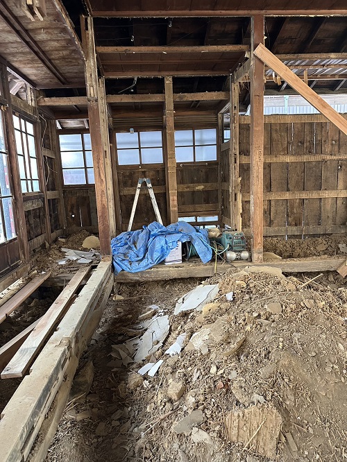 床解体の次は内部間仕切り壁の取り外しが進められました。