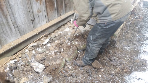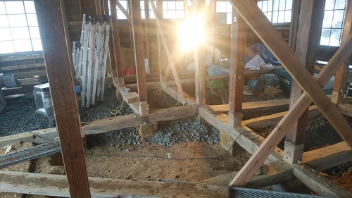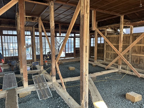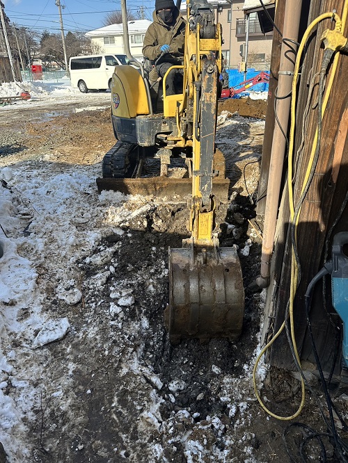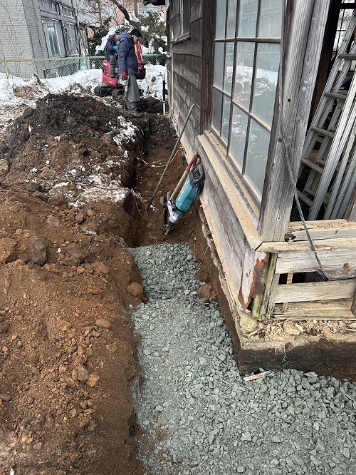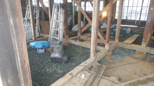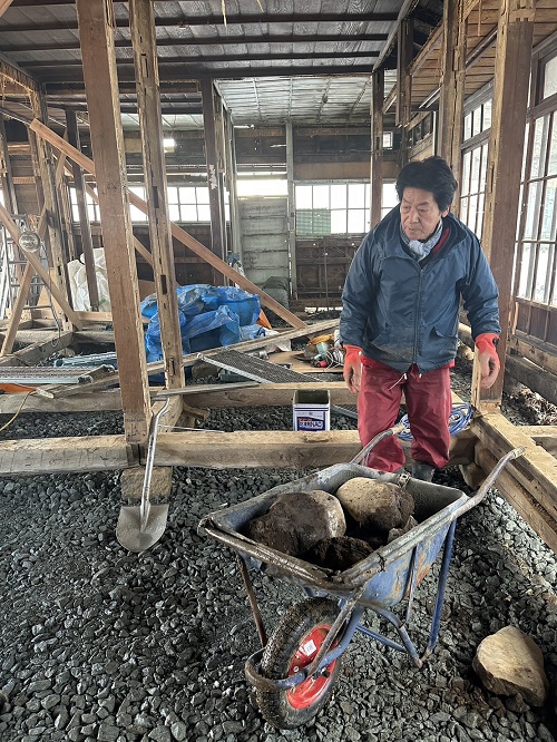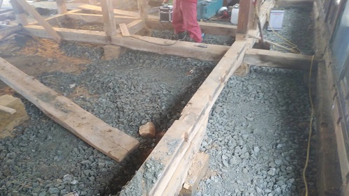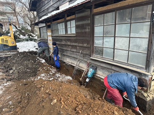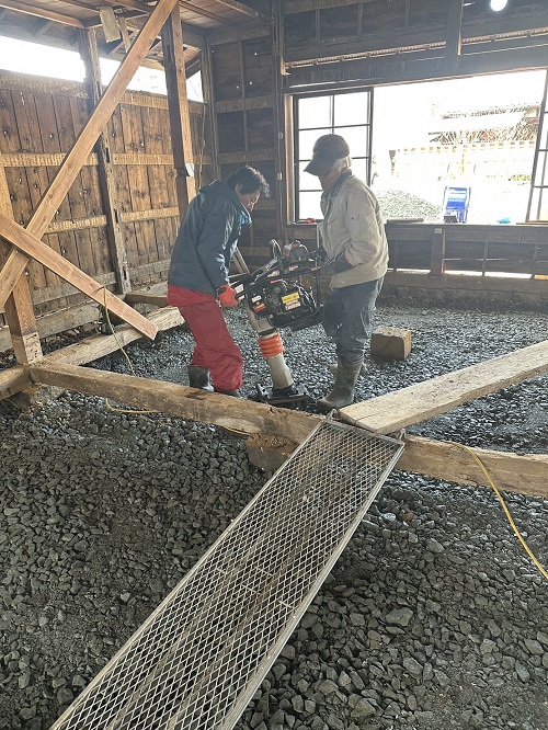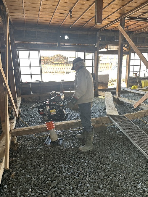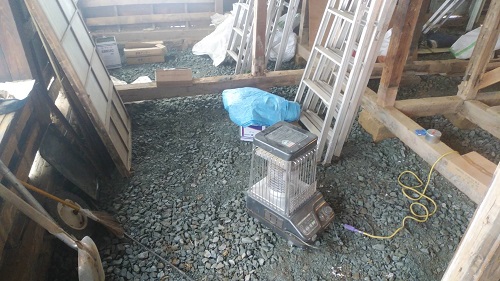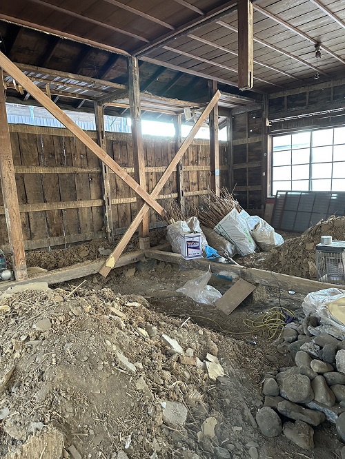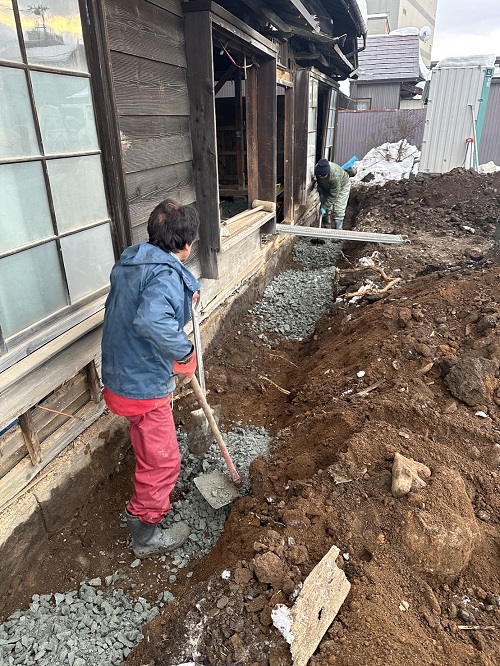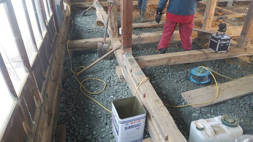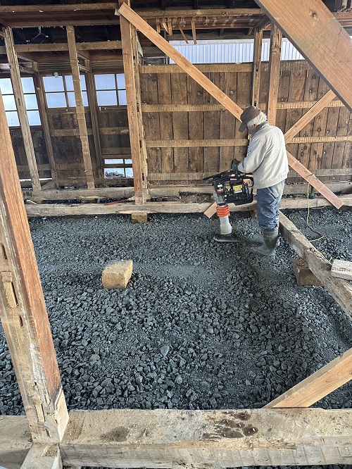 落とした土壁を片付けたので、引き続きで土間基礎工事に入ります。