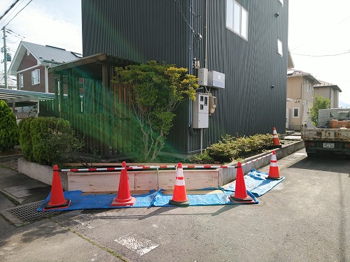 車が突っ込んで壊された土留めの修復工事をさせていただきました。