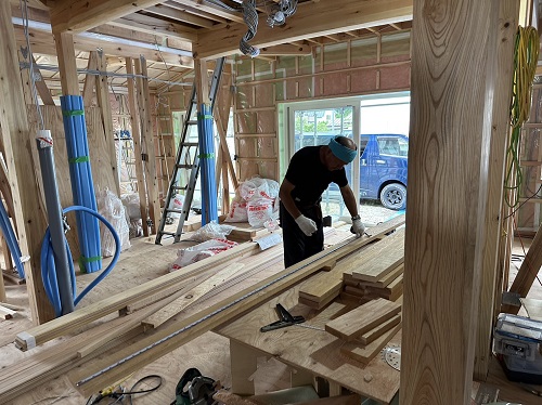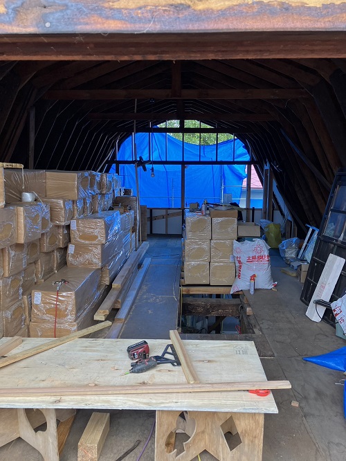 平屋部の屋根葺きが始まりました。もう少しだけ暑さが和らいでくれたらいいのにと思います。
