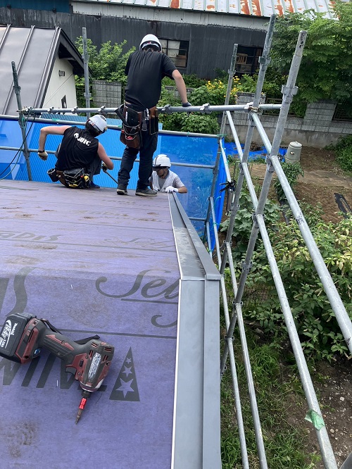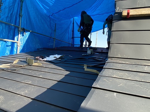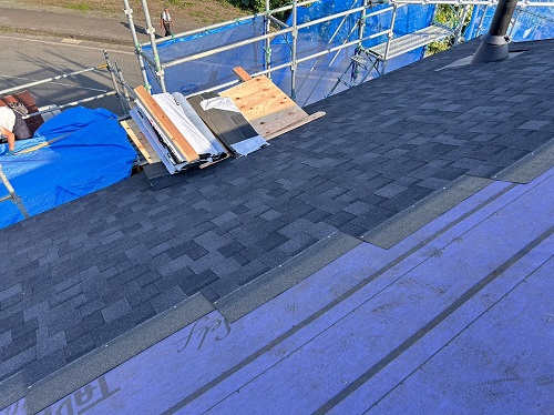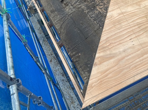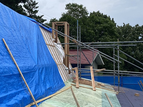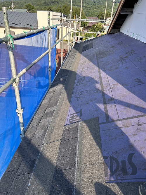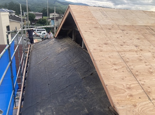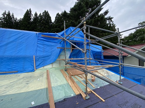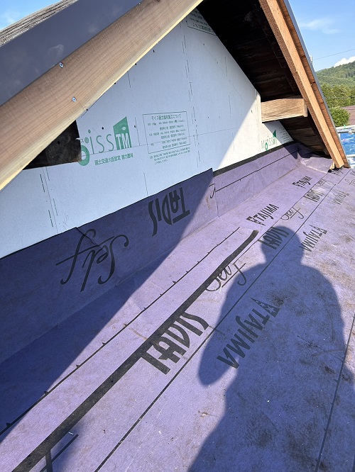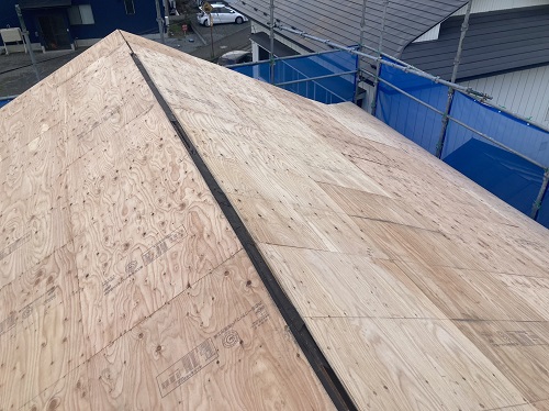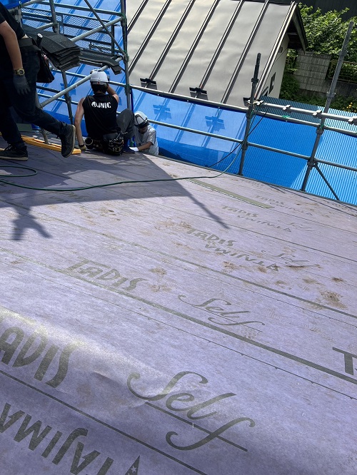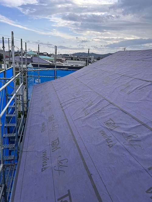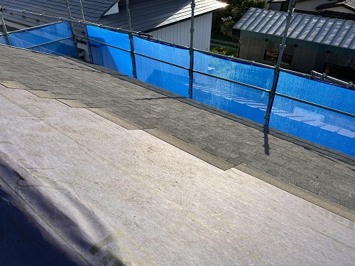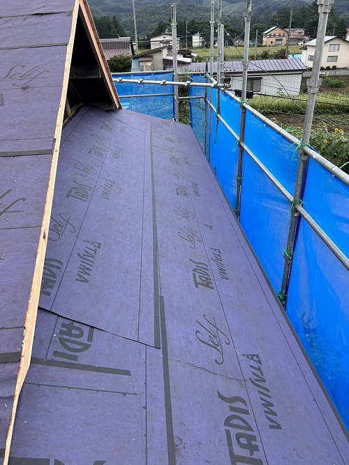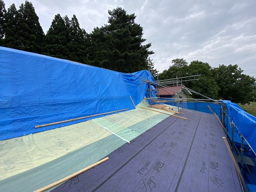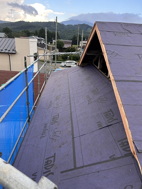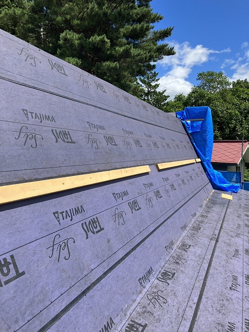屋根工事は防水シート張り込まれました。