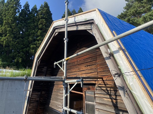 同様に屋根を葺き上げた好摩の大改修現場です。
