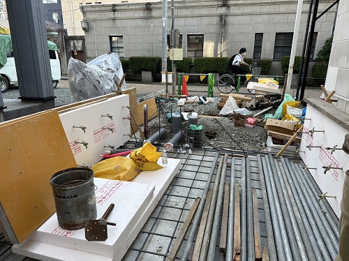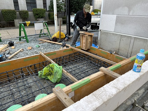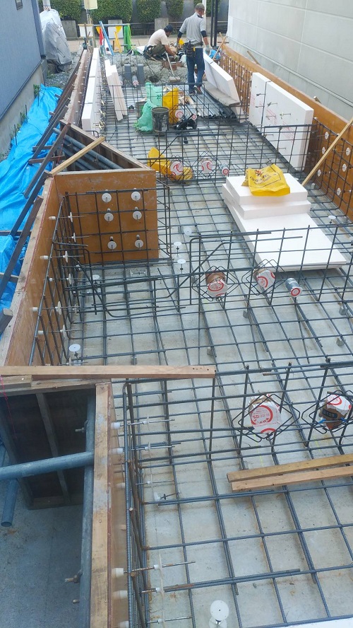 本体は配筋と枠固めも進んで土間部の配筋へと進みました。