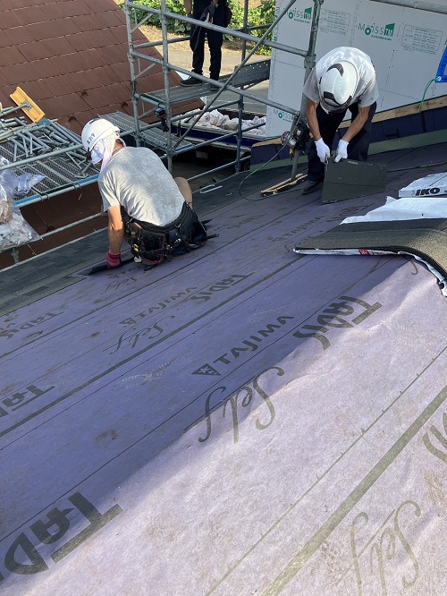 マンサード屋根葺きが進みました。