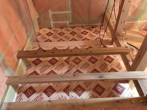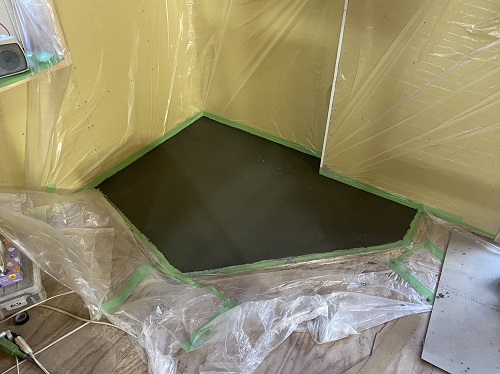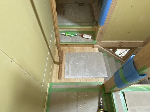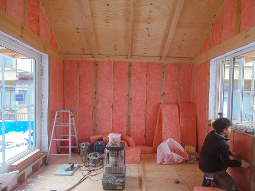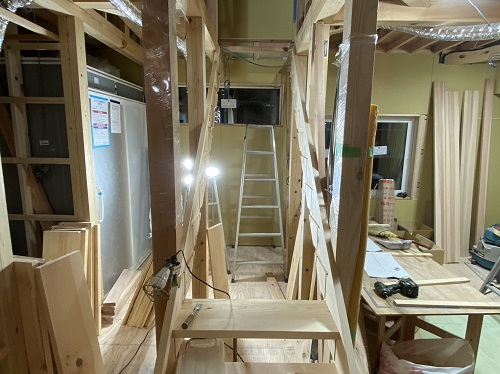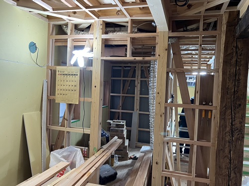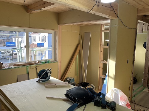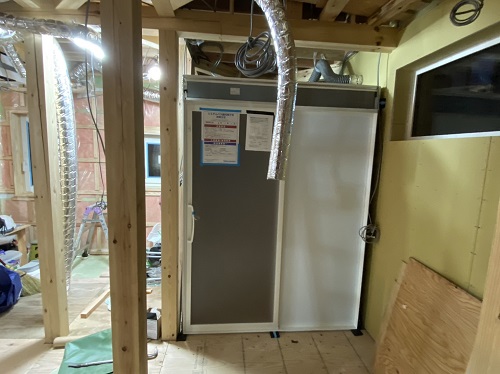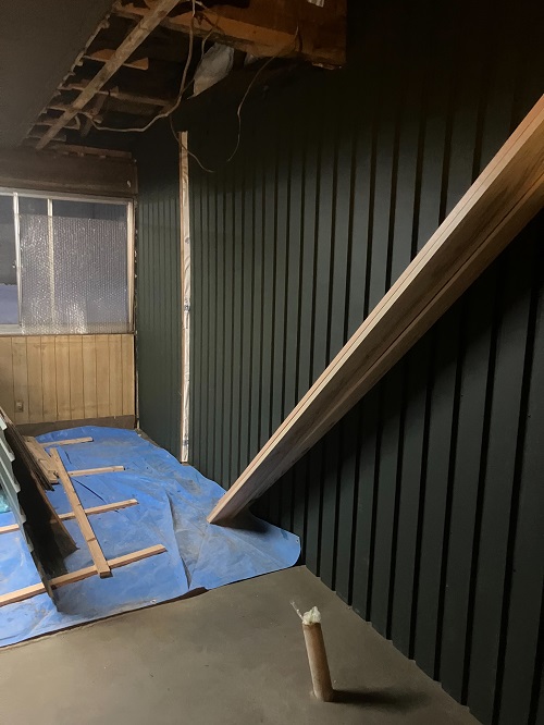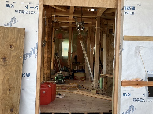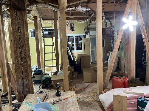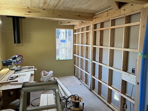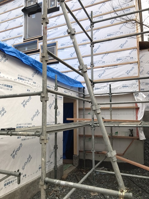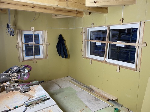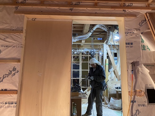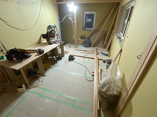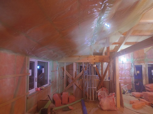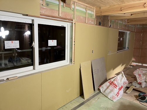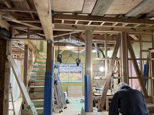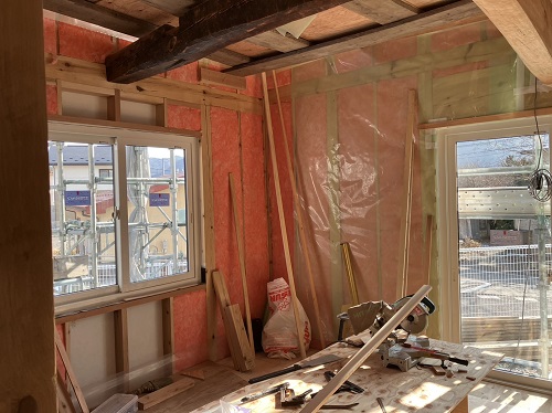 新年を迎えての現場作業は昨年の続きで防湿工事とボード下地の取り付け及び電気配線です。