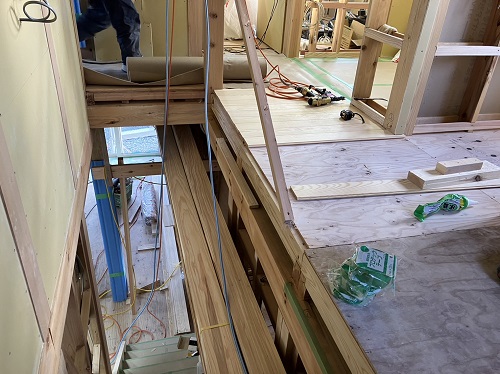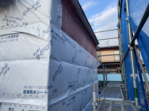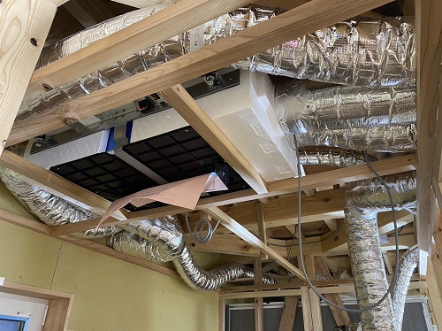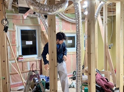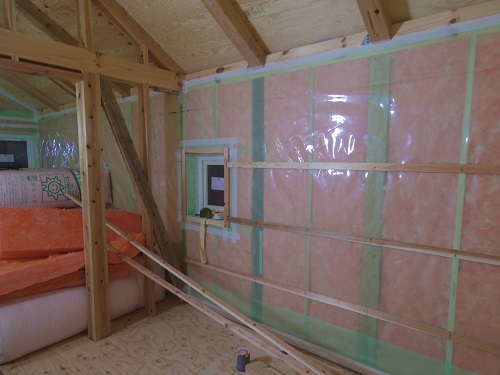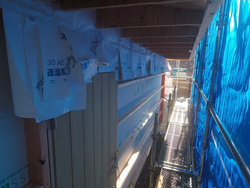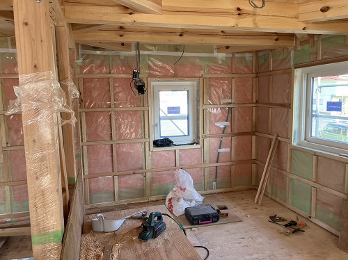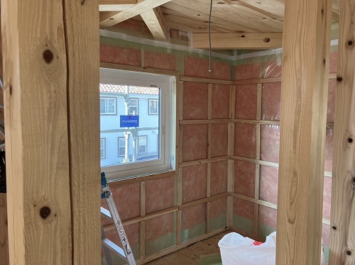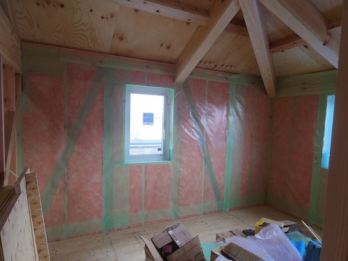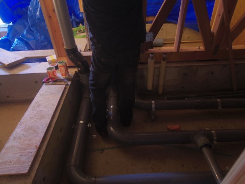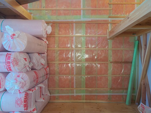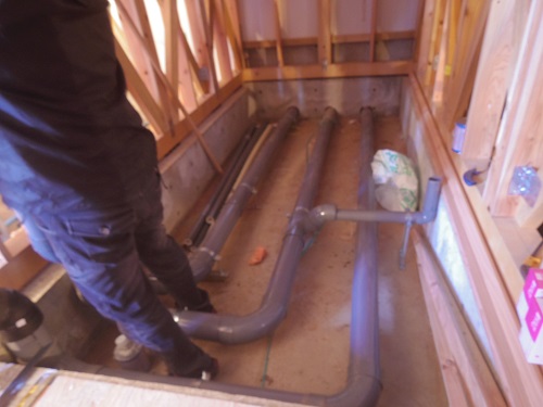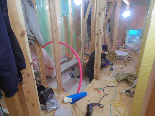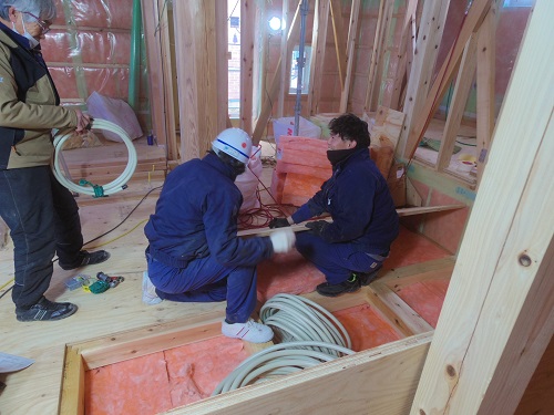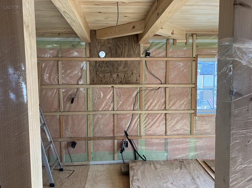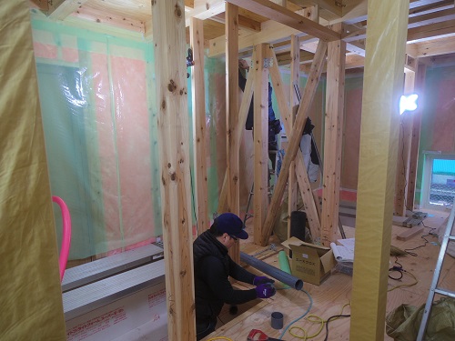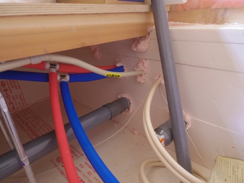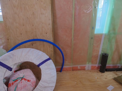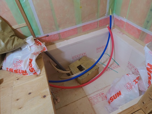 壁断熱と防湿工事も進み、配管工事も行われました。