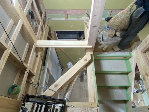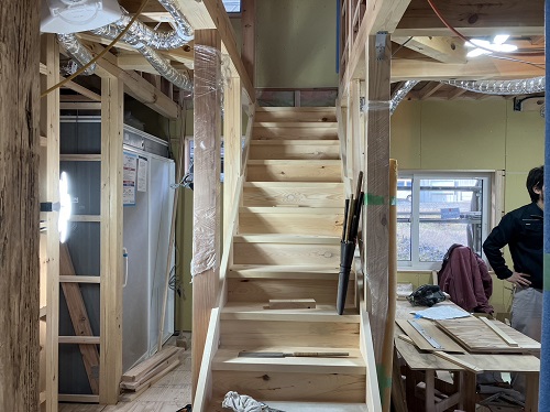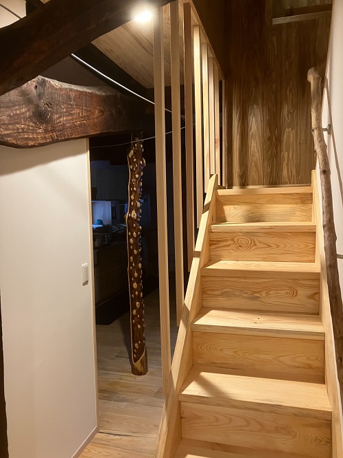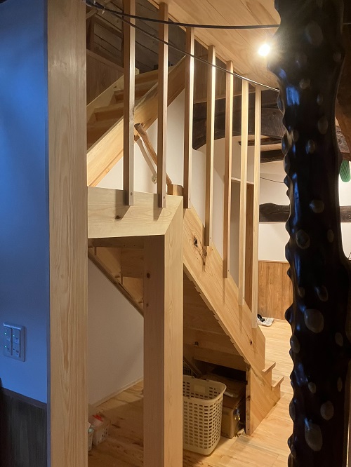 追加で階段に壁格子と旧台所を土間にする工事をご依頼いただきました。