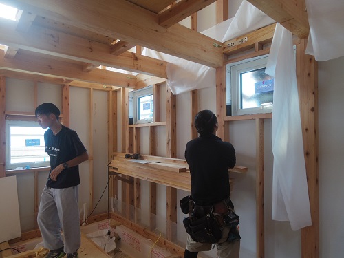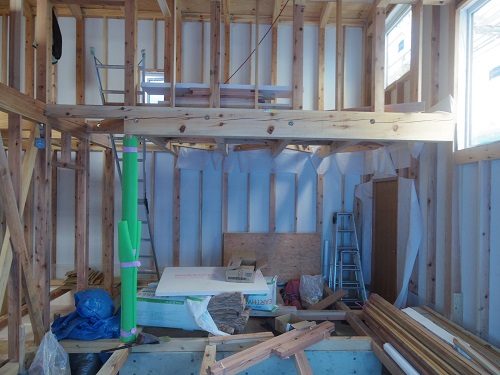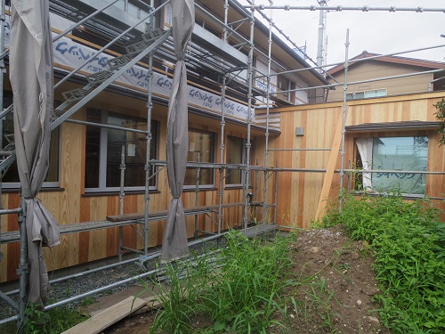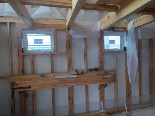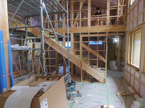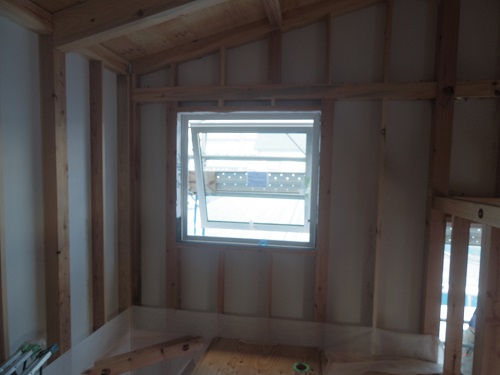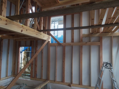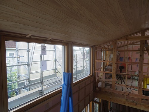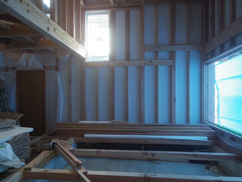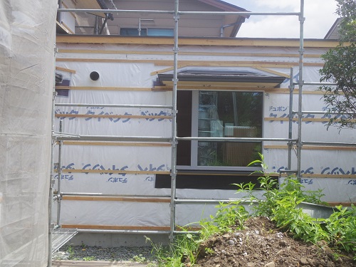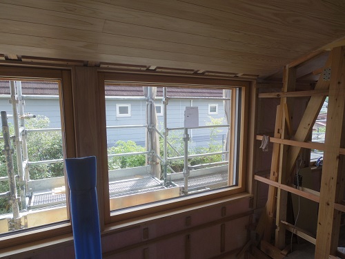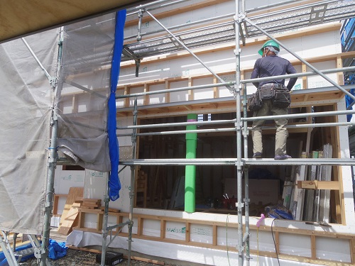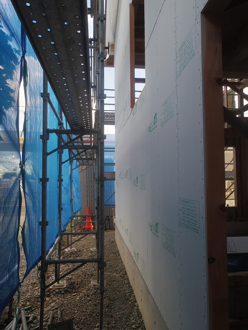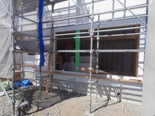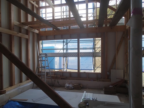 外壁は大分進みましたが、最後の仕上げに桟打ちがまだなので、もう一頑張りです。内部はPB張込みや窓枠の取り付けが進んでいます。