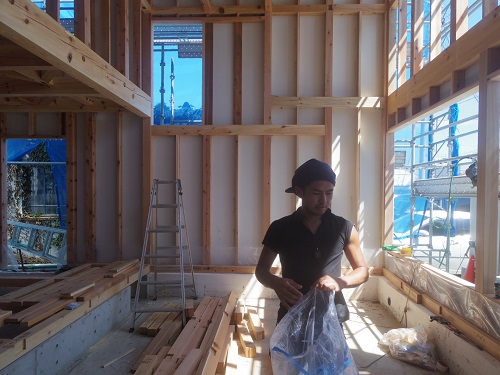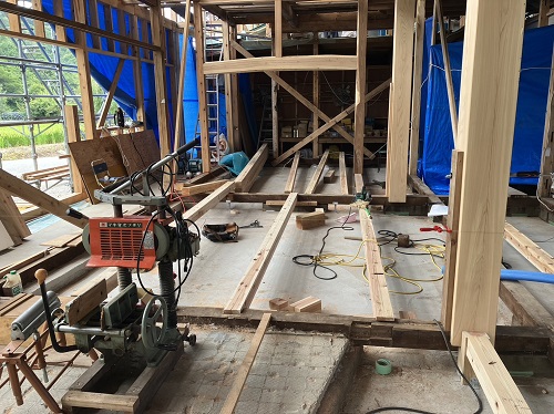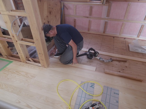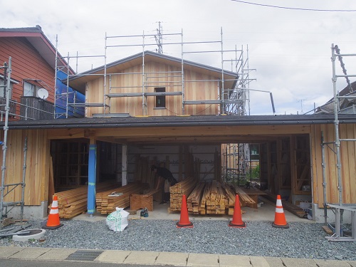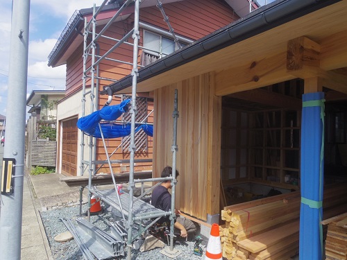 昨日までの進捗です。西青山の新築現場の方に大工さんが皆で行ったので、一人若手が一人頑張っています。