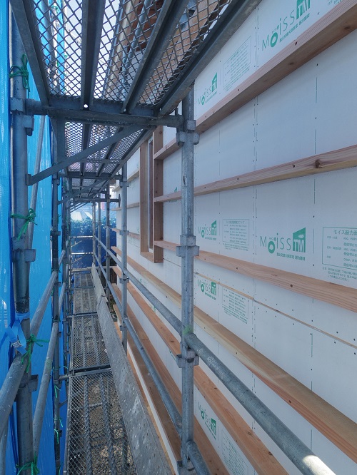付加断熱下地の取り付けが進みました。
