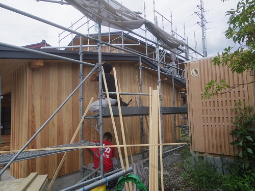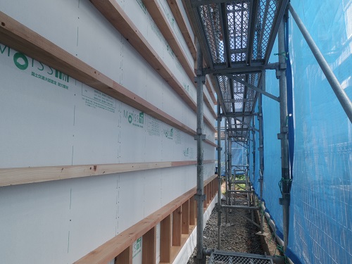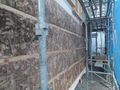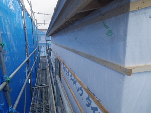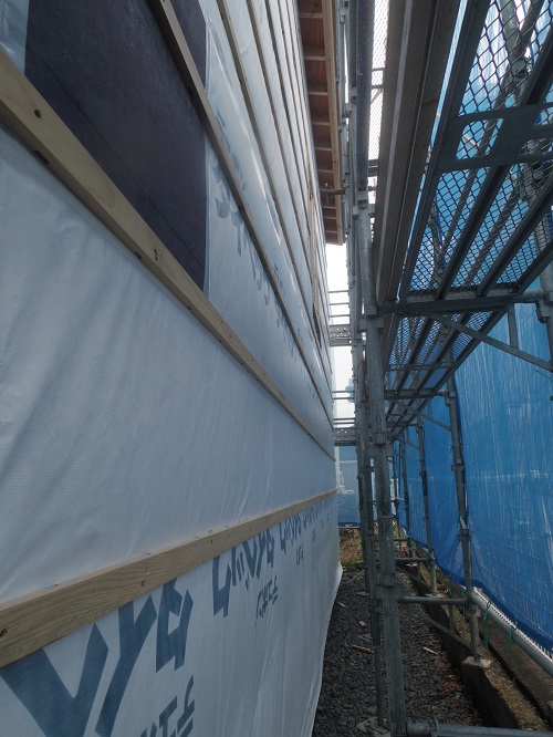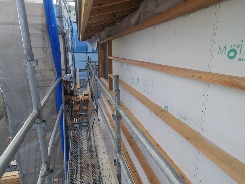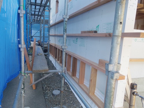 外部は外壁下地胴縁が進んでいました。