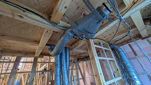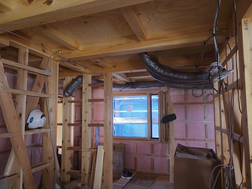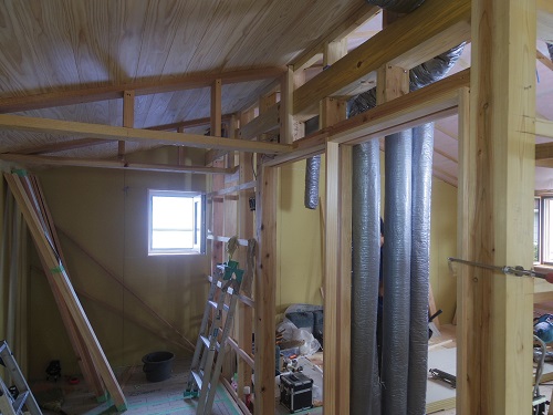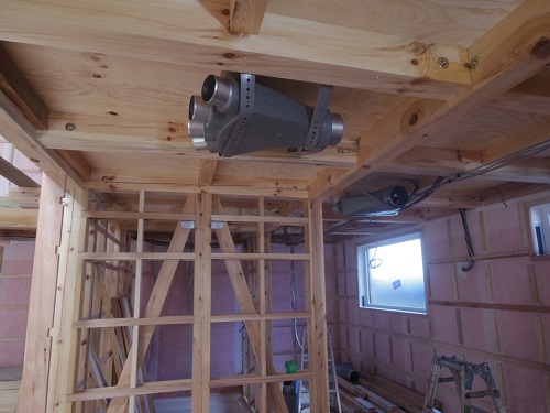 換気配管が進みました。換気配管も大工さんが行っています。