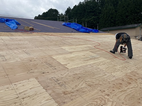 既存部の上屋根工事が進んでいました。