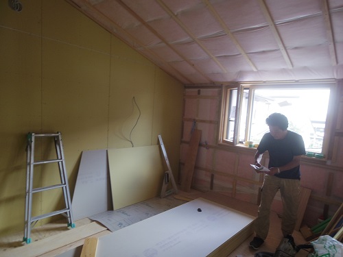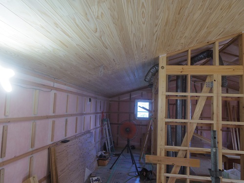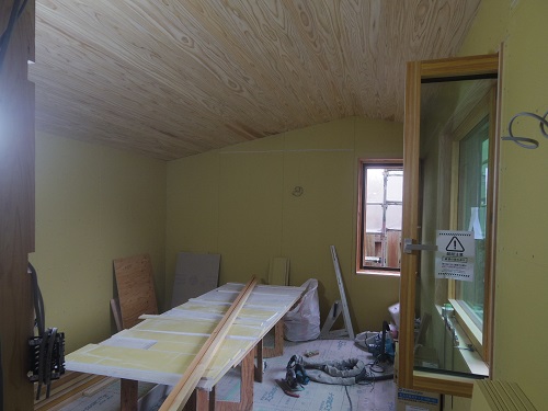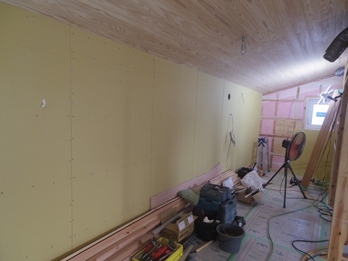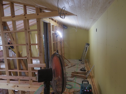 外壁をまだまだ頑張らねばなりませんが、内部は床張りPB張込みも進みました。