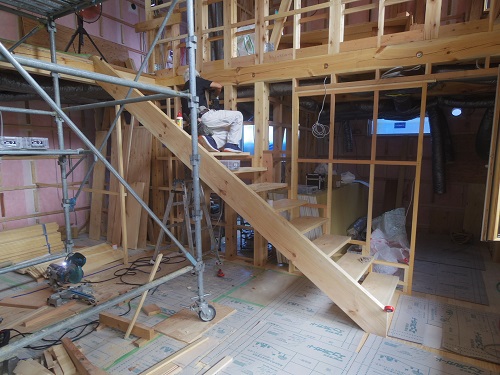 外壁が進み階段の取り付けも進みました。