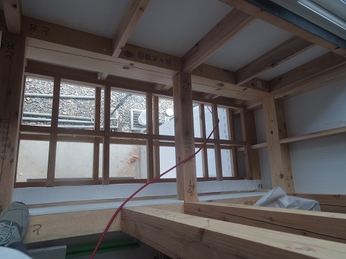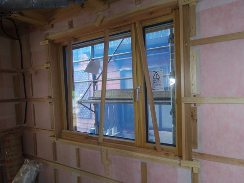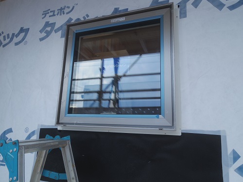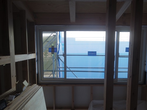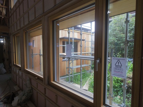 サッシの取り付けが進みました。