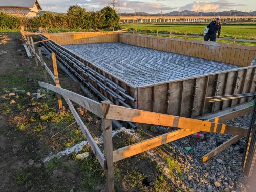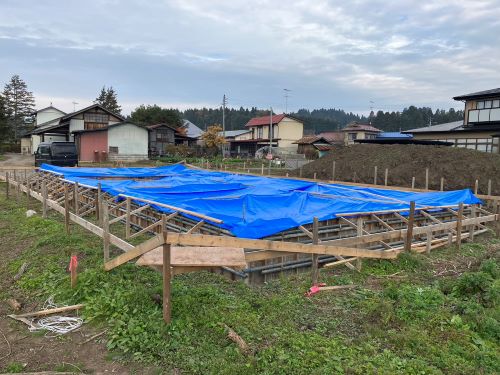 基礎の脱枠と外周整地が完了しました。そして冬囲いに入ります。