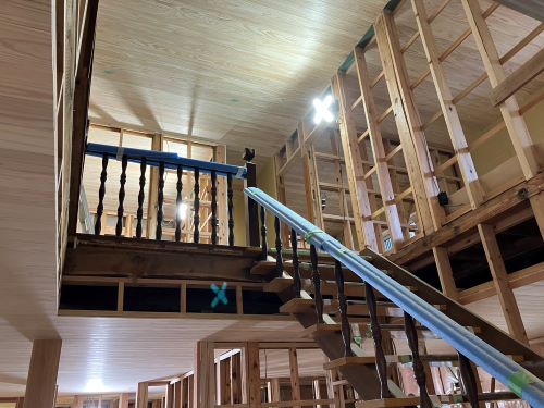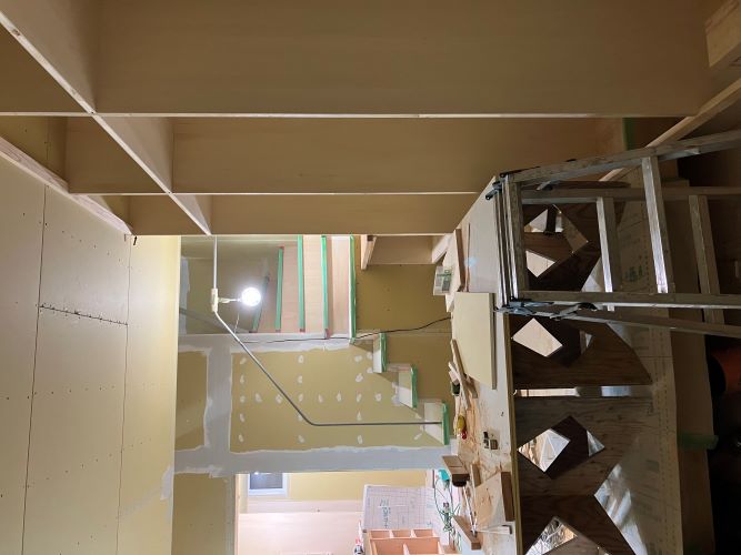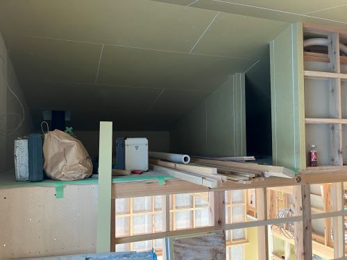 大工工事は1階のPB張り込みなどまだまだ作業していますが、2階から内装が進みだしています。