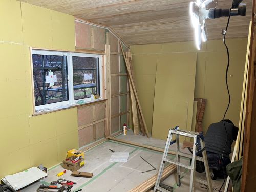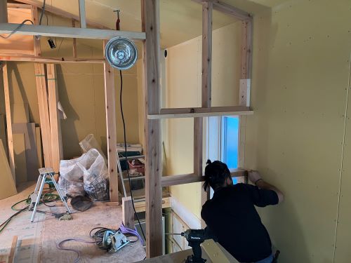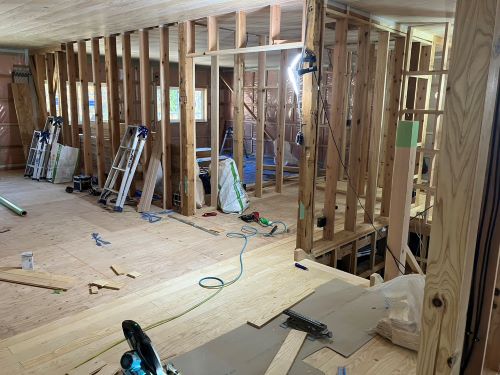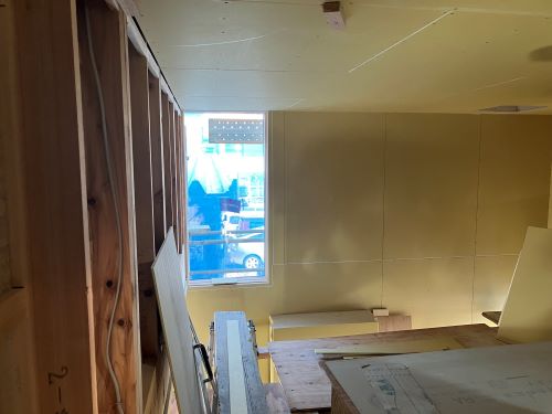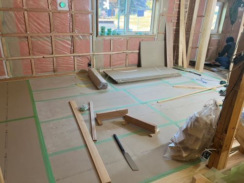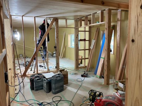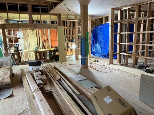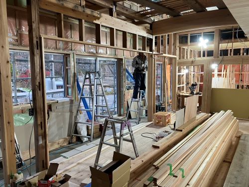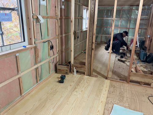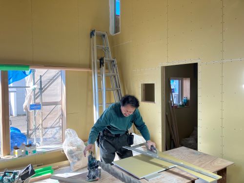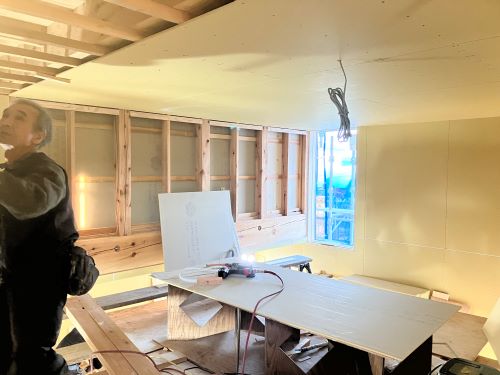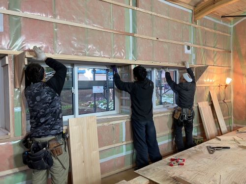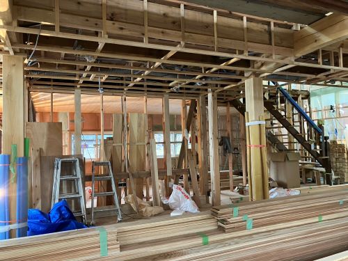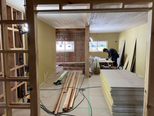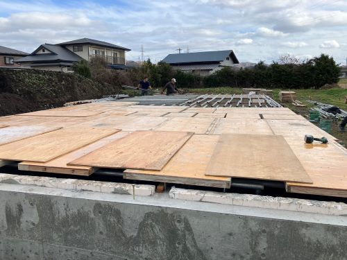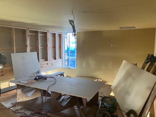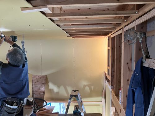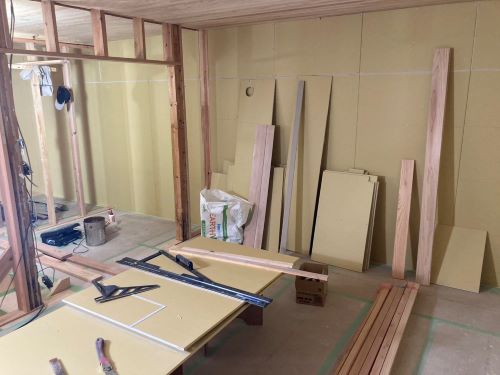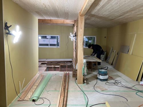 PBの張り込みが進みだしました。床張りはもう一息です。