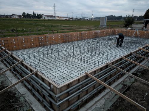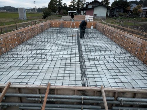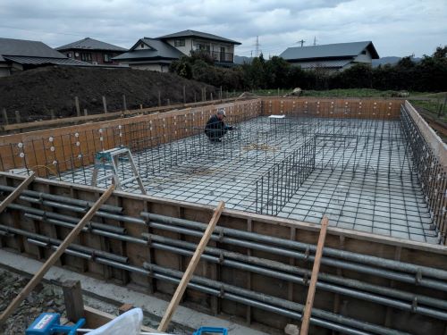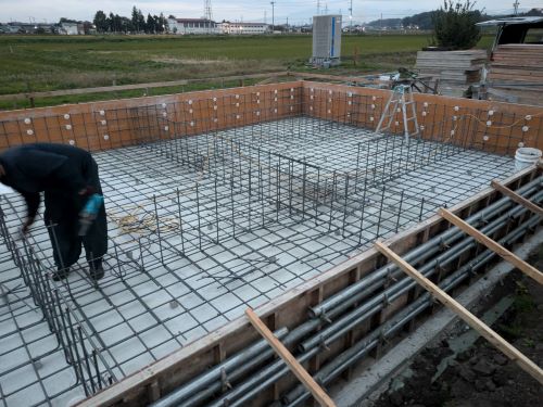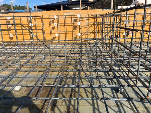 基礎配筋は、内部の配筋まで進みました。