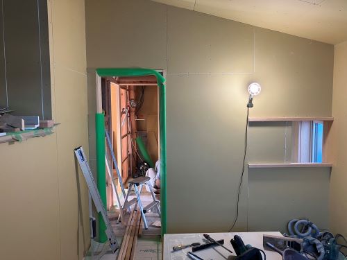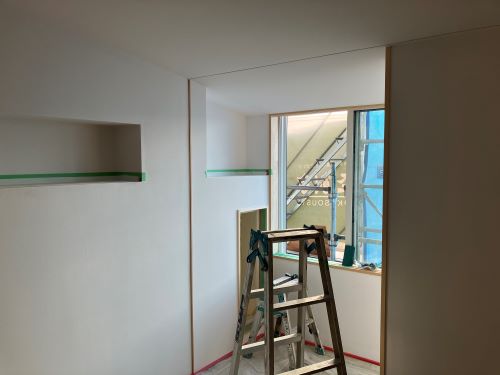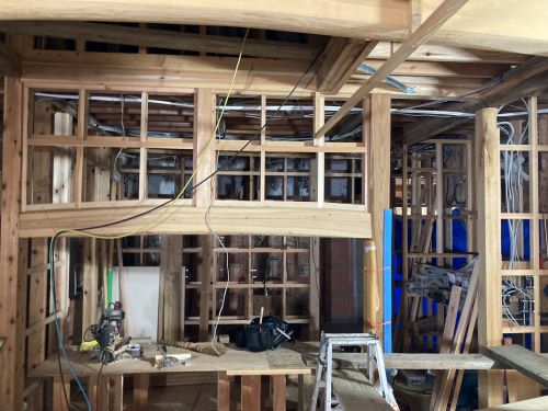 天井下地が進みました。他ボード張り込みや枠の取り付けも同時進行です。