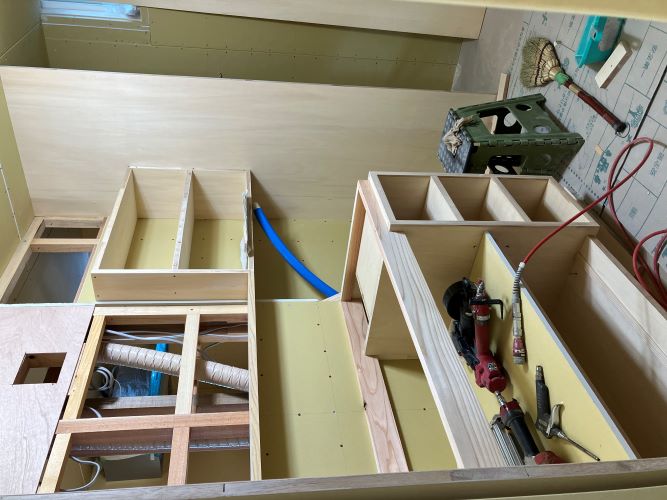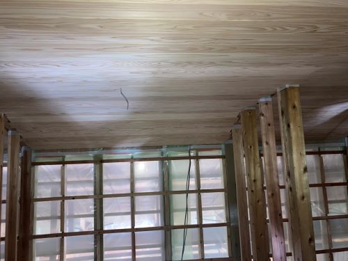 床張り込みと天井板の張り込みが進みました。