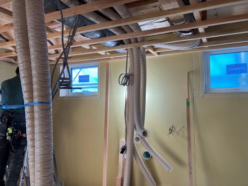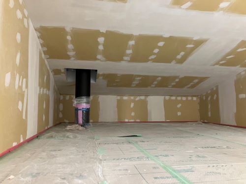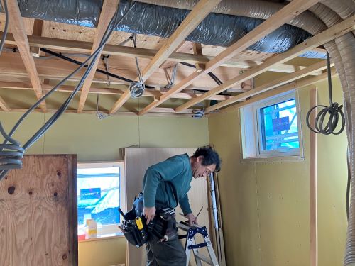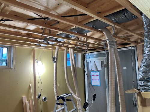 換気ダクト下の天井工事が進みます。